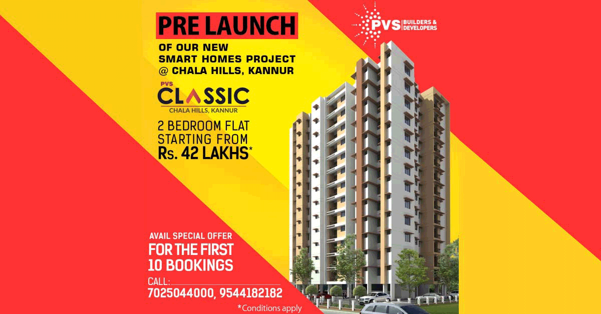 Kannur has got everything from old city charm to all modern amenities of a metro city. It is bound by natural beauty with the Western Ghats and the Arabian Sea in its close vicinity with natural beaches, hill stations, rivers, backwaters, etc., and other attraction such as historical monuments and religious centres. Kannur was hailed by the famous traveller Marco Polo as the great emporium of the spice trade. Much understanding what people look for while choosing and setting an abode, PVS Builders & Developers has located their project – 'Classic' in a prime spot in Kannur that spreads over an area of 67.38 cents, located at Chala. We understand the importance of a location that allows greater connectivity, making your life hassle-free and effortless; Chala is a census town situated 8 K.M from Kannur City which lies on the Kannur - Tellicherry National Highway. It also closely located to the upcoming international airport which around 40 kms from the spot. Another attraction that cannot miss from mentioning is the famous drive-in beach at Muzhappilangad in Kannur.